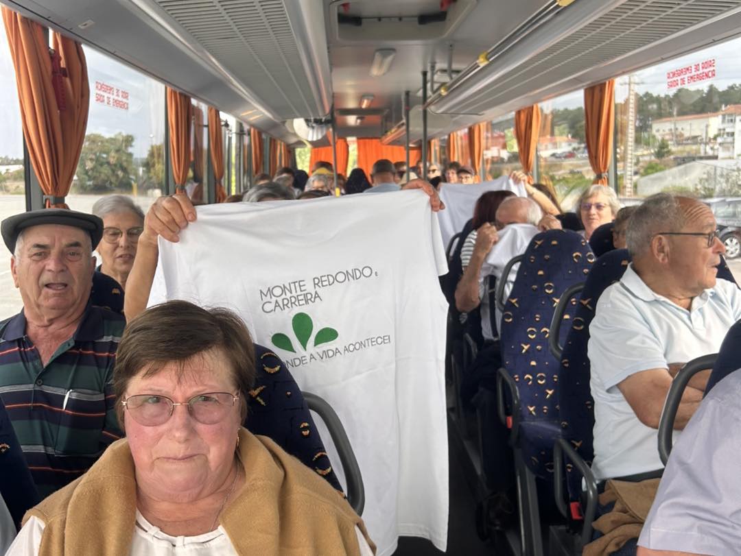 Para garantir conforto, segurança e identificação do grupo, a Junta de Freguesia assegurou transporte e ofereceu uma t-shirt personalizada a cada participante.